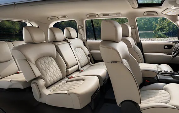 Ride in luxury with available leather-appointed first- and second-row seats. From first and second row outboard seats to the steering wheel, you've got available heated options that keep you cozy. With multiple cargo configurations and a handy available power liftgate, bringing your gear feels effortless.[*] Armada takes cargo seriously, plus with 40" or more of leg room in the first and second rows, every passenger can stretch out comfortably.[*]