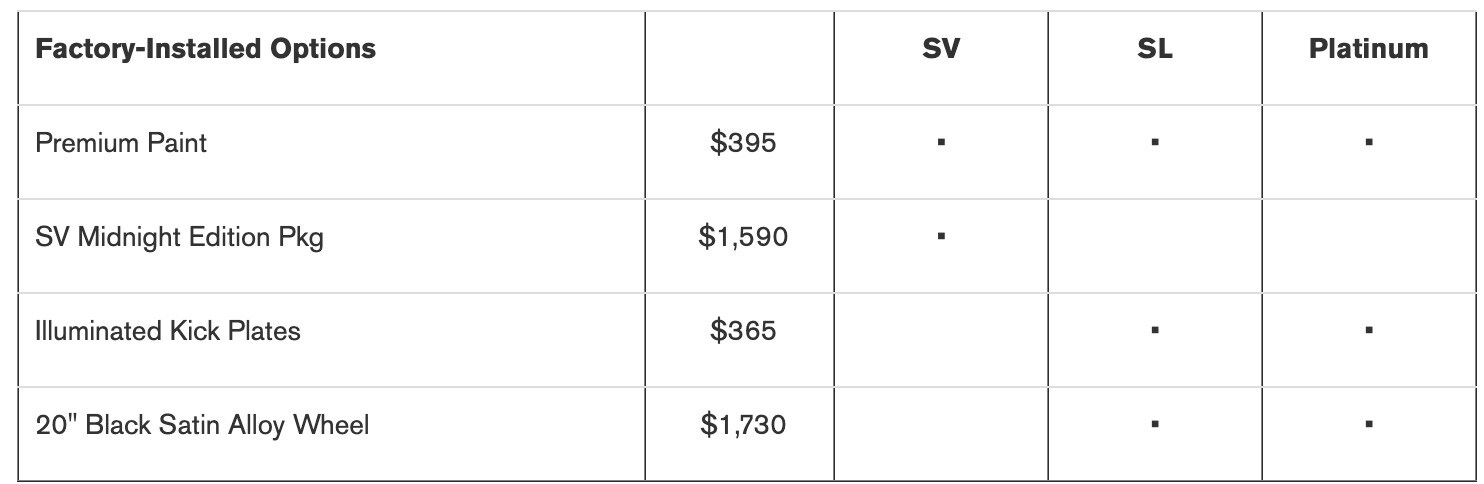 - MSRP excludes applicable tax, title, license fees and destination charges. Dealer sets actual price. Prices and specs are subject to change without notice. Destination and handling $1,335.