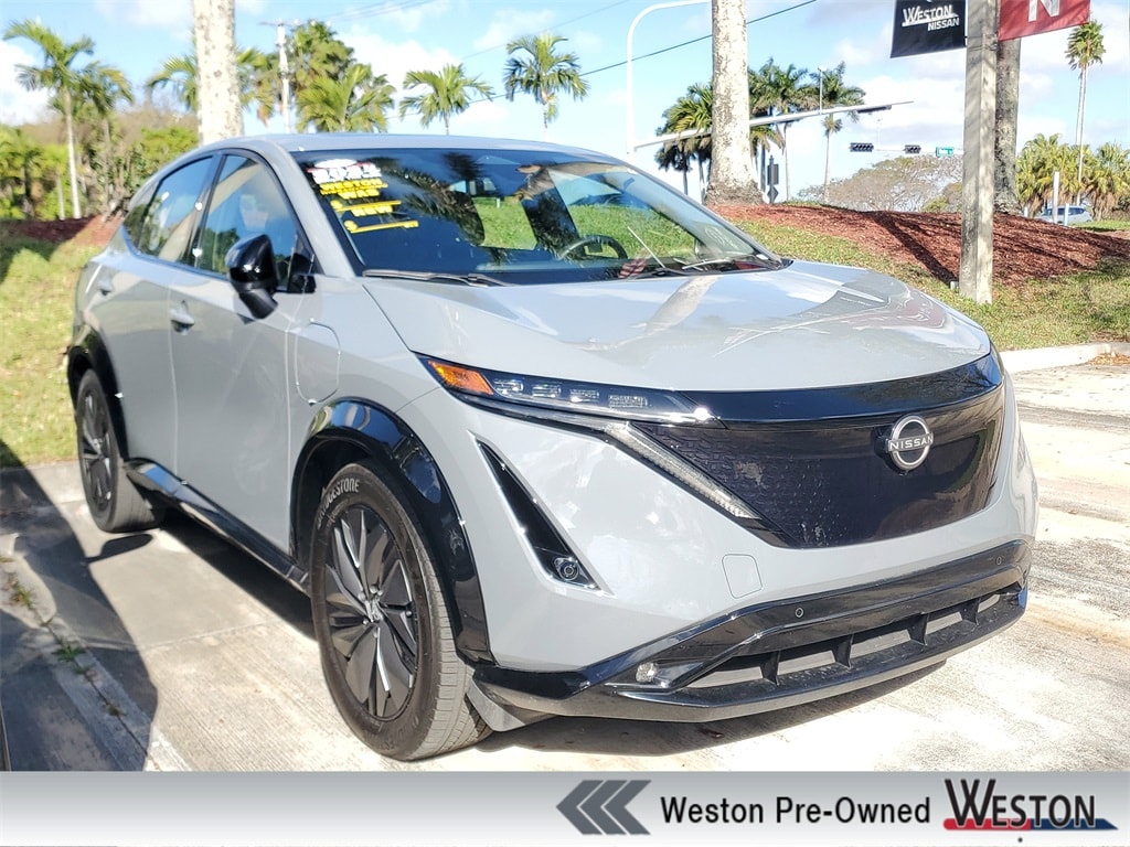 Ariya EVOLVE+ e-4ORCE, 4D Sport Utility, Electric Motor, CVT, AWD, Boulder Gray Pearl, Charcoal Artificial Leather. Clean CARFAX. CARFAX One-Owner.