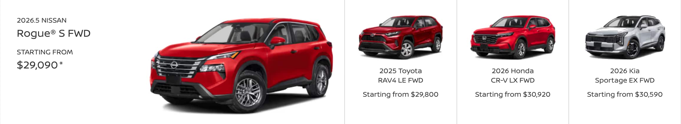 FAQs car shoppers have when comparing the Rogue, RAV4, CR-V and Sportage