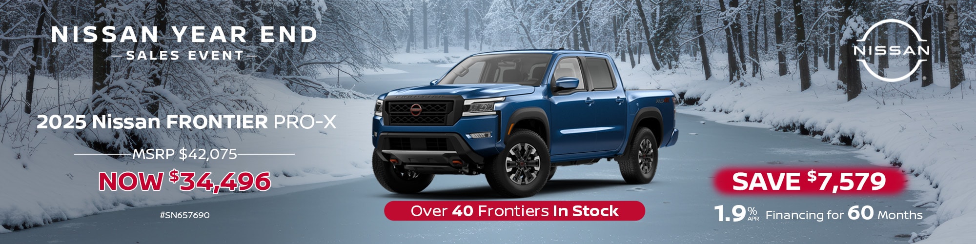 2025 Frontier Pro-X. #SN657690. MSRP $42,075 Sale price $34,496. APR offers on approved credit for well qualified buyers. Offers expire 12/1/25.