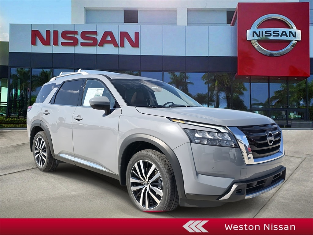 HOME DELIVERY SERVICE - ANYWHERE, ANY TIME! $9,687 off MSRP! Factory MSRP: $52,075 2025 Nissan Pathfinder Platinum 3.5L V6 DOHC Boulder Gray Pearl 20/27 City/Highway MPG Price includes all factory rebates and available incentives. Excludes tax, tag, title and dealer fees. For well-qualified buyers:$5000 - Nissan Customer Cash. Exp. 11/03/2025