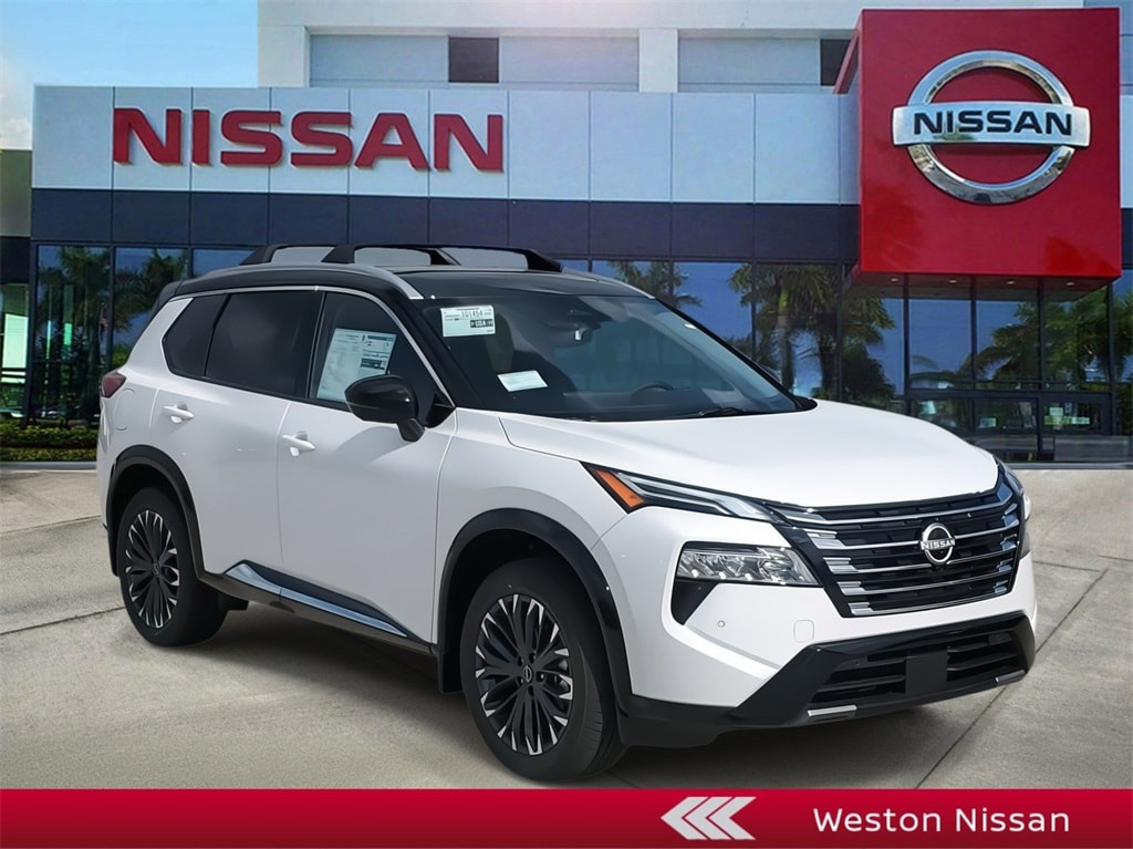 HOME DELIVERY SERVICE - ANYWHERE, ANY TIME! $4,604 off MSRP! Factory MSRP: $42,395 2025 Nissan Rogue Platinum 1.5L DOHC Everest White Pearl/Super Black 29/36 City/Highway MPG Price includes all factory rebates and available incentives. Excludes tax, tag, title and dealer fees. For well-qualified buyers:$1000 - Nissan MY25 Rogue (SL-Plat) Customer Cash. Exp. 09/30/2025